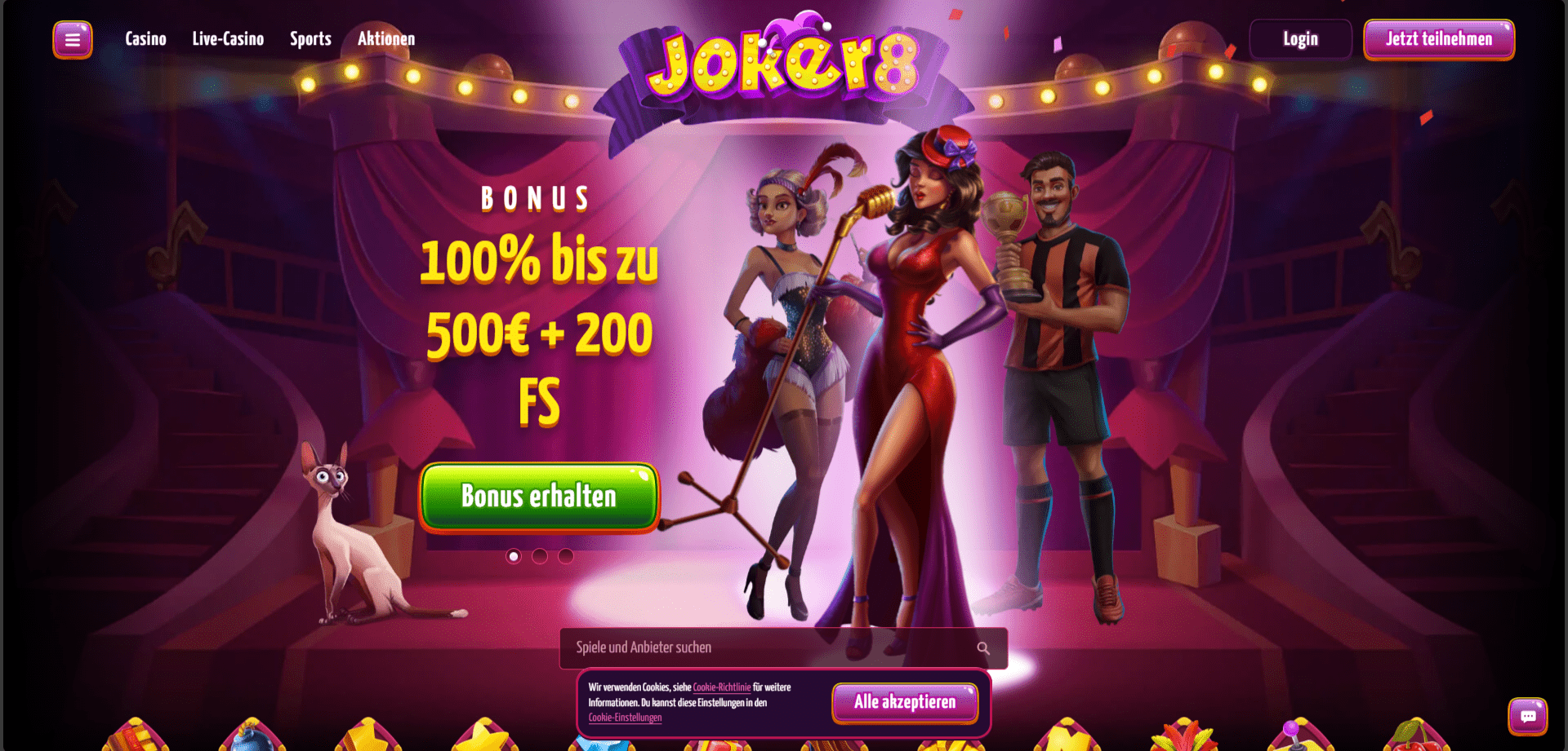 Im Joker8 Casino gibt es mehr als 4000 verschiedene Spiele, die von mehr als 70 Anbietern angeboten werden, Sie können also nur eine hervorragende Vielfalt erwarten. Es gibt alle Arten von Spielautomaten, Minispielen und Hunderte von Live- und virtuellen Tischspielen. Die letztere Kategorie umfasst fast alle Varianten von Roulette, Blackjack, Poker und vielen anderen.
