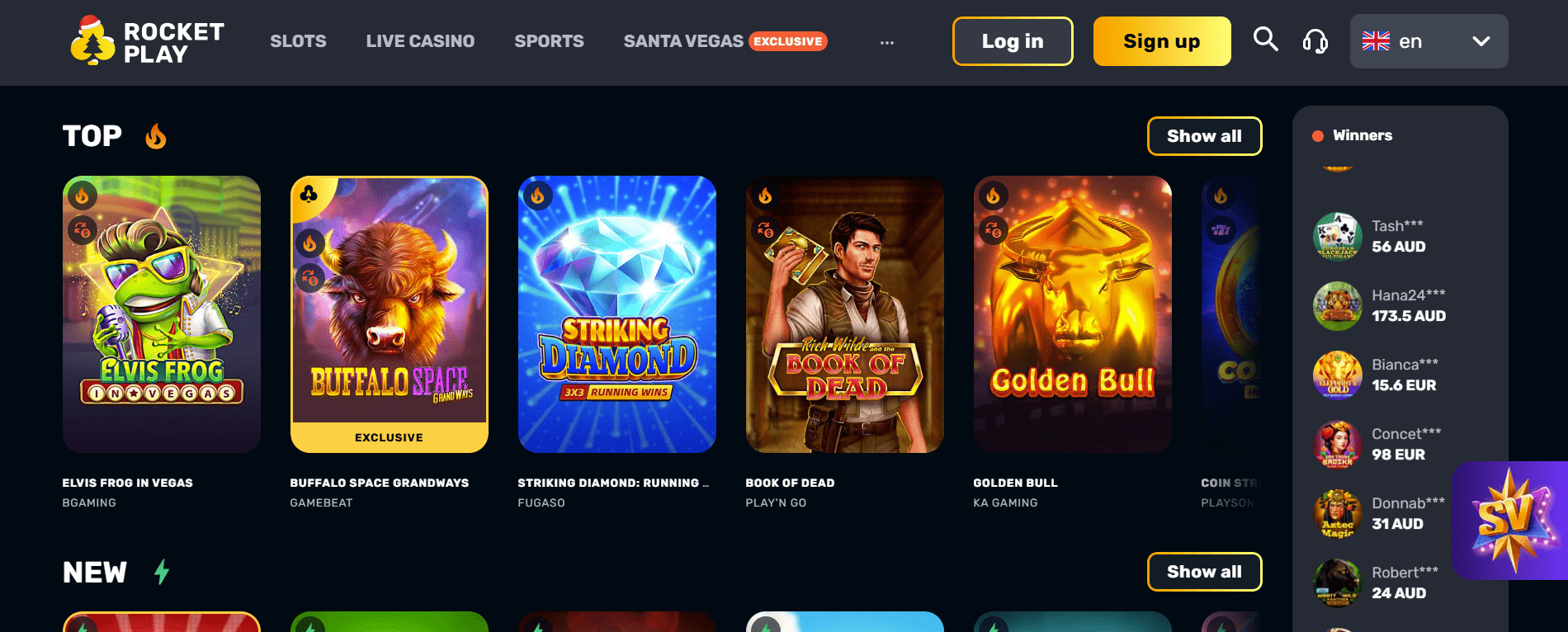 RocketPlay bietet verschiedene Video-, Jackpot- und Megaways-Slots sowie viele Live-Dealer-Spiele, darunter verschiedene Varianten von Blackjack, Baccarat, Poker und Roulette.